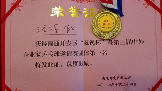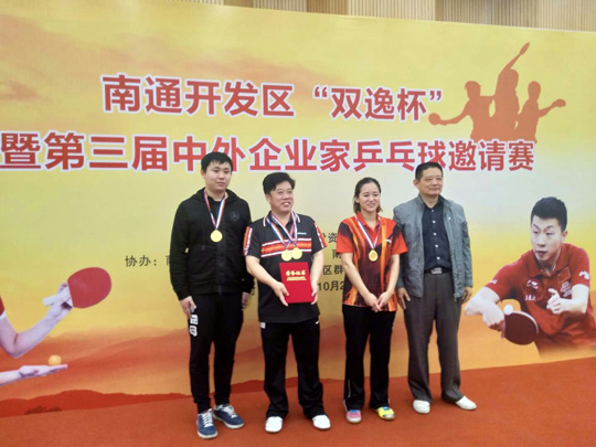10月24日,三圣石墨代表隊參加南通開發(fā)區(qū)“雙逸杯”暨第三屆中外企業(yè)家乒乓球邀請賽,通過一天的緊張角逐,過關斬將,最終在24支代表隊中脫穎而出,獲得本次比賽冠軍。