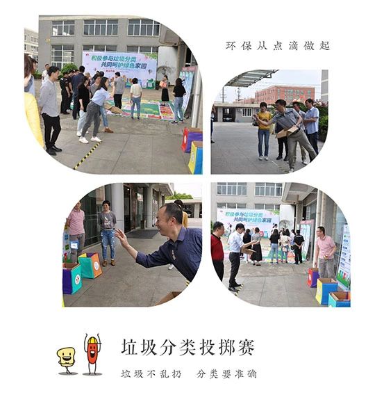 本年度的環(huán)保日主題活動,融匯了知識、趣味、合作、體育等多種元素,共組織了與垃圾分類相關(guān)的計(jì)時(shí)賽、投擲賽、飛行棋、知識競賽搶答等四個(gè)項(xiàng)目,分區(qū)活動,并設(shè)有垃圾分類知識普及專欄展示區(qū),供大家邊玩邊學(xué)邊體驗(yàn),從實(shí)施垃圾分類的重要性,到各種垃圾如何進(jìn)行分類等方面,寓教于樂,引得陣陣圍觀:“這樣的宣傳方式既有意義又有趣,輕松易學(xué),真是一舉兩得?!?/p>