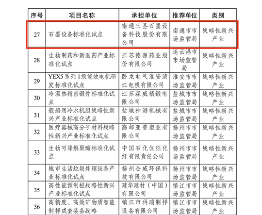 優(yōu)質(zhì)產(chǎn)品是企業(yè)的核心,公司石墨設(shè)備標(biāo)準(zhǔn)化建設(shè)獲得“江蘇省戰(zhàn)略性新興產(chǎn)業(yè)標(biāo)準(zhǔn)化試點項目”。產(chǎn)品標(biāo)準(zhǔn)化夯實質(zhì)量品牌發(fā)展,公司被列入江蘇"旗艦領(lǐng)航”重點培育計劃。