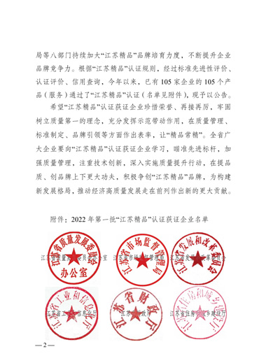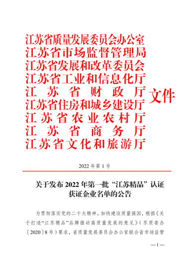 “江蘇精品”是江蘇省為推動(dòng)形成一批自主創(chuàng)新、品質(zhì)高端、服務(wù)優(yōu)質(zhì)、信譽(yù)過硬、市場(chǎng)公認(rèn)的“江蘇精品”品牌群體,以行業(yè)龍頭骨干、“專精特新”和“單項(xiàng)冠軍”等企業(yè)為主體認(rèn)證對(duì)象,參照國際慣例、運(yùn)用市場(chǎng)機(jī)制,由江蘇省市場(chǎng)監(jiān)管局會(huì)同省發(fā)改委等七部門開展的重點(diǎn)認(rèn)證工作。